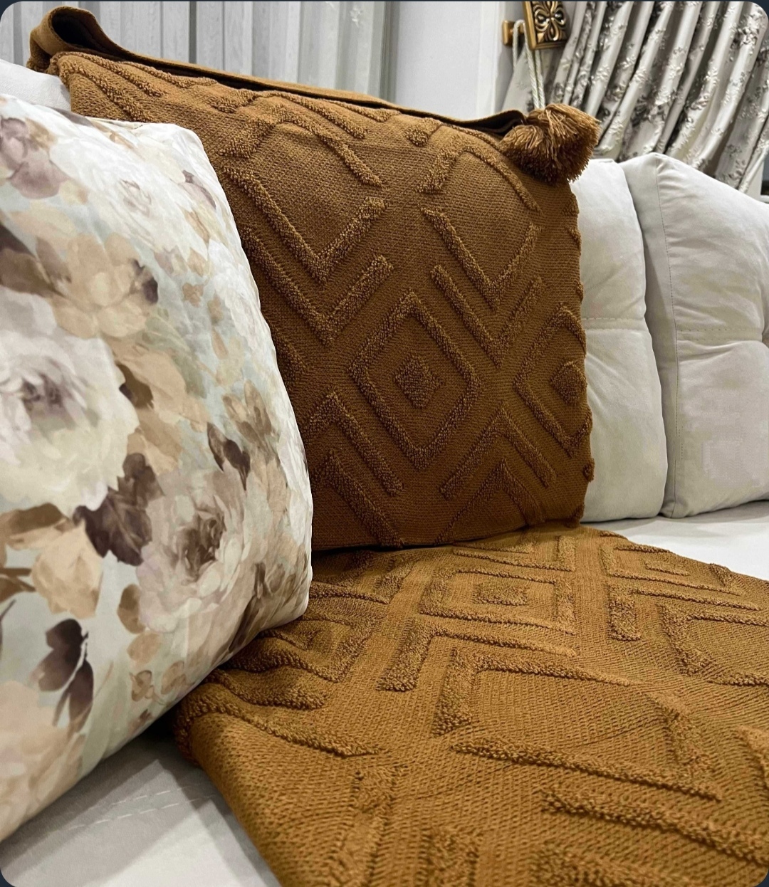 شال مبل پانچی نخ اکرولیک شکلاتی