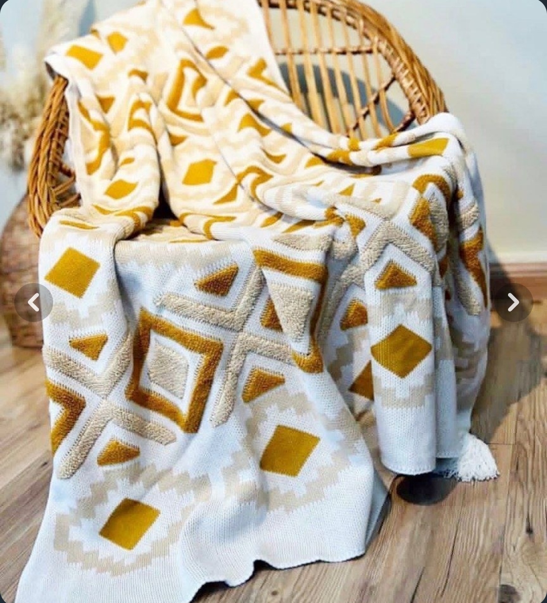 شال مبل پانچ بافتنی دو رنگ خردلی