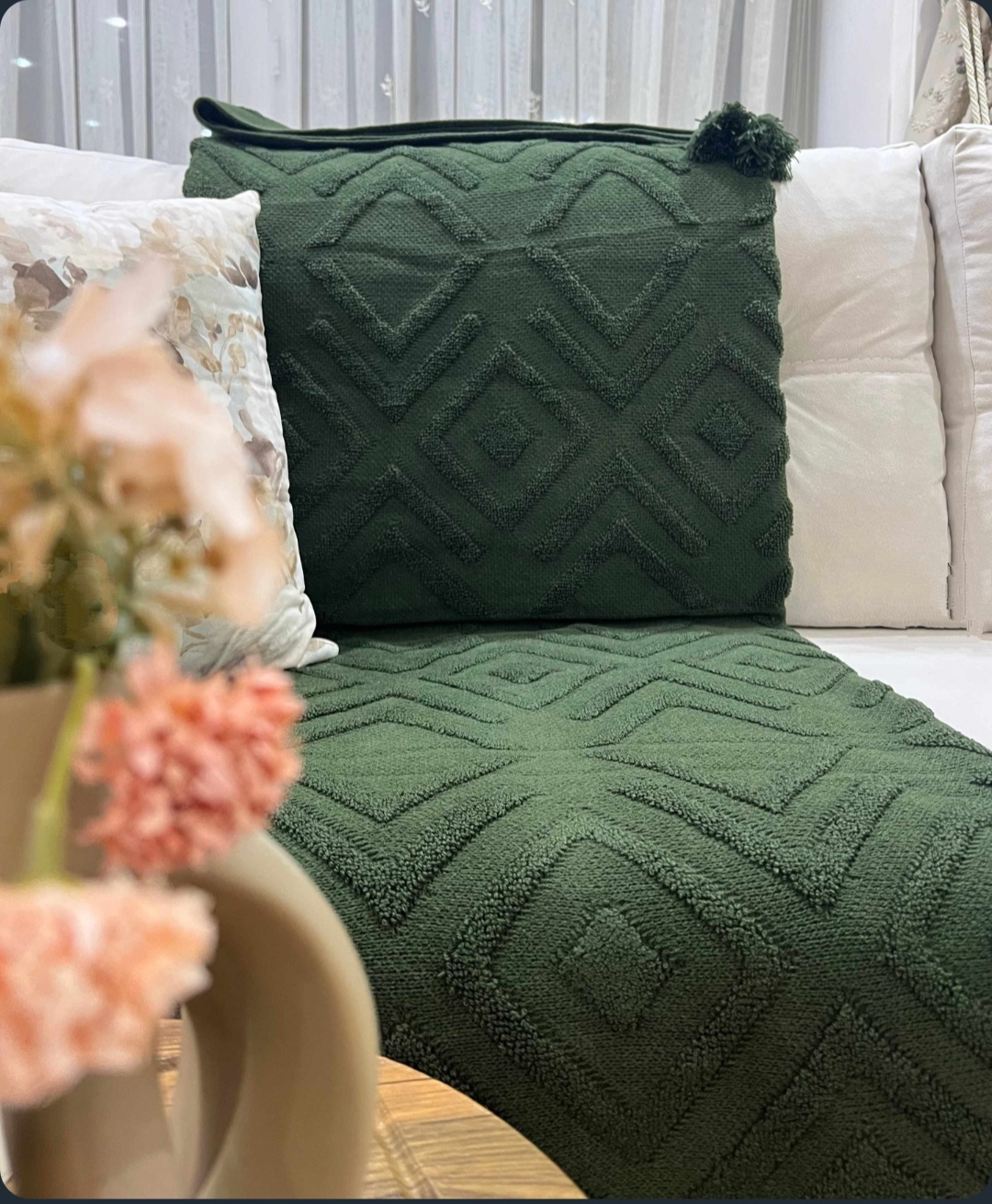 شال مبل پانچ بافتنی تک رنگ سبز ابعاد200*140 جنس بافت ریز نحوه شستشو با ماشین لباسشویی با دمای 30درجه شستشو با دست و ماشین لباسشویی