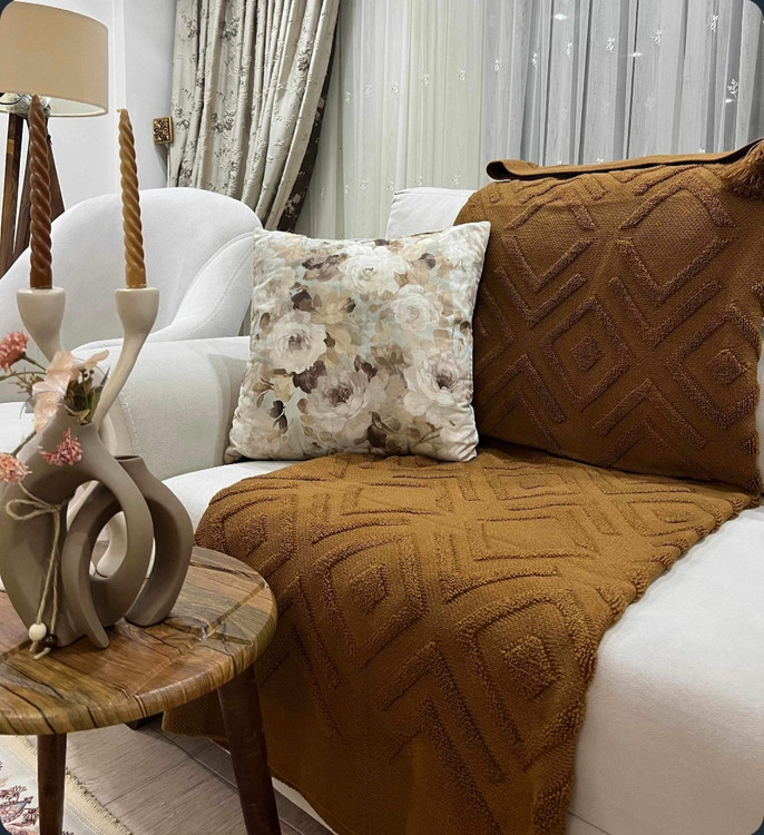 شال مبل پانچی نخ اکرولیک شکلاتی