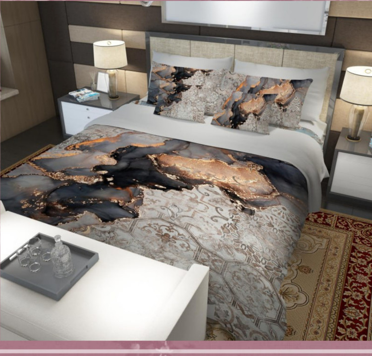رویه لحاف طرح دار زیره لحاف و ملحفه کشدار ساده تک رنگ طوسی